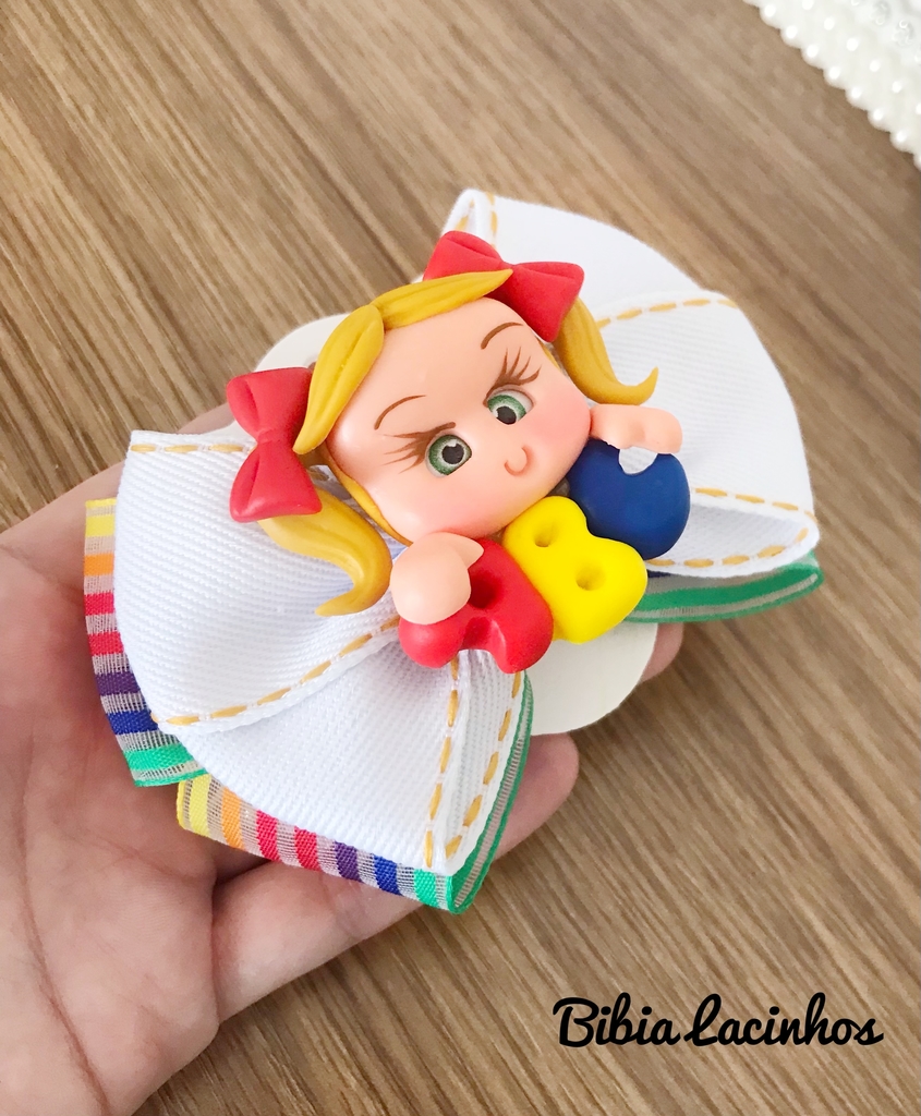 Laço Jeans escuro com fita colorida e aplique de biscuit menina. Laço Branco com fita colorida e aplique de biscuit menina. Todos os produtos da Bibia Lacinhos são produzidas com materiais de qualidade visando maior durabilidade. Prazo de 5 dias para produção.