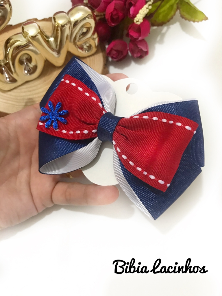 Laço em 3 cores (azul marinho,vermelho e branco), no tamanho G.
